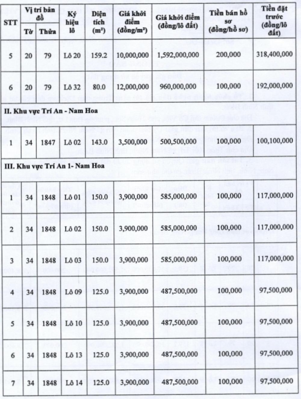 それによると、土地区画の面積は80〜175m2、総土地面積は2 834m2で、開始価格は300万〜1200万VND/m2、各土地区画あたり約3億3000万VND以上です。
