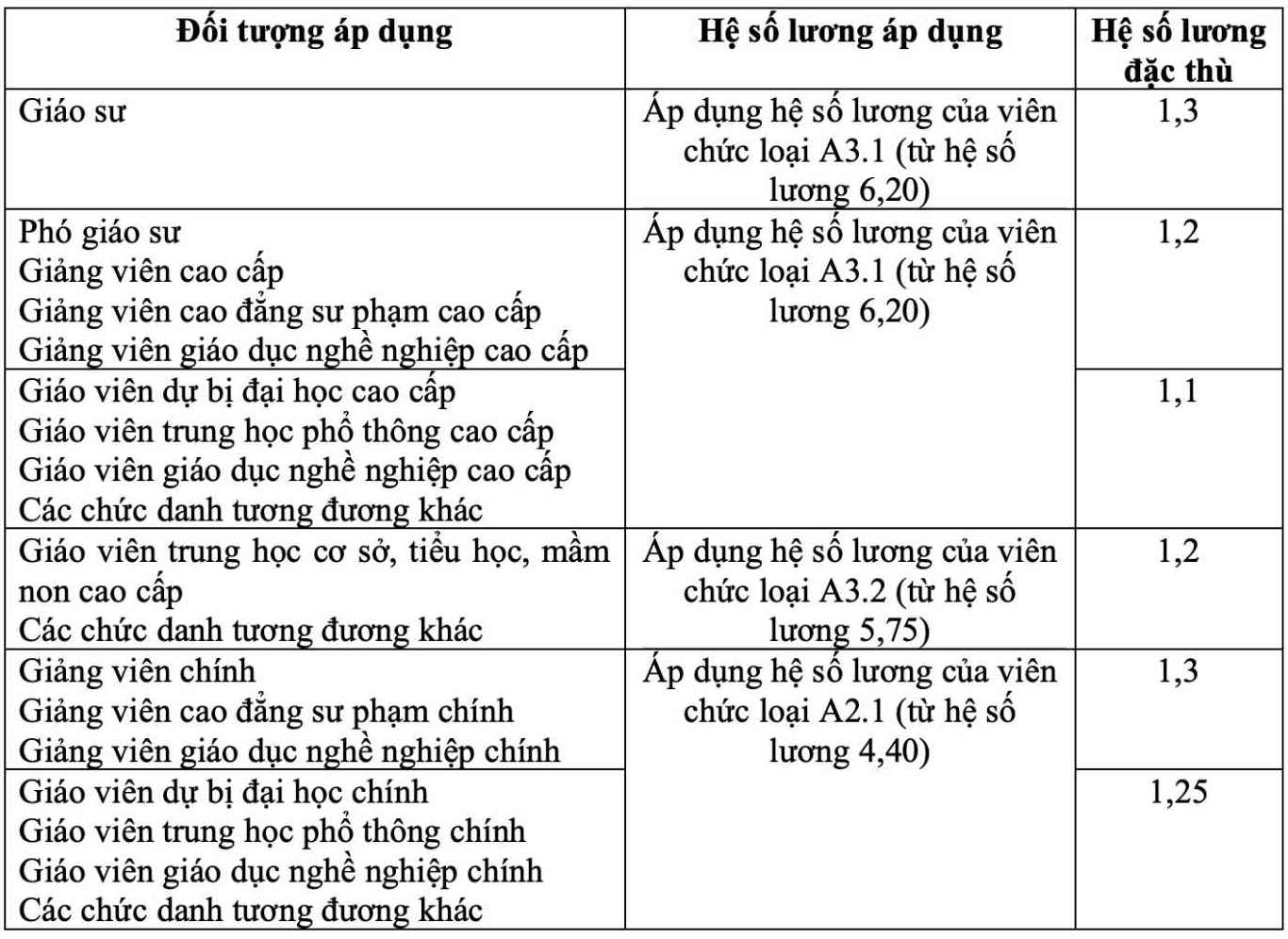その中で、政令草案第4条は、教員に対する給与係数と特別給与係数を提案しています。教員は、行政および職務給与等級に従って給与が割り当てられ、職名に対応する特別給与係数をさらに享受できます。