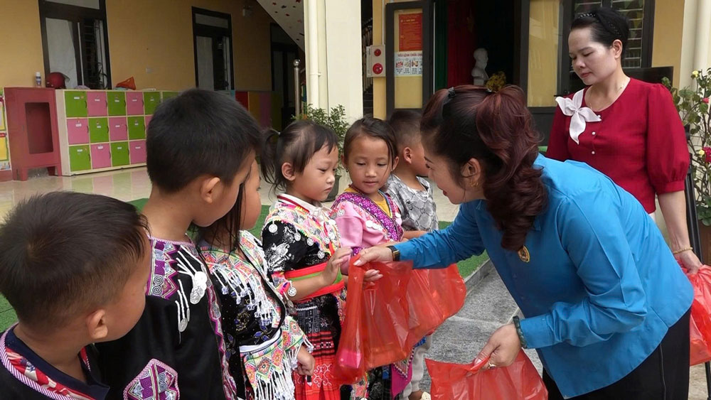 この機会に、Nghia Lo区労働組合は、地域内の多くの企業や企業と協力して、中秋節の贈り物を贈り、一部の村、村、地区の子供たちに届けました。
