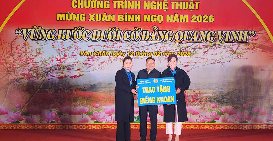 この機会に、ギアロ区労働組合はソンティン市場労働組合と協力して、スオイブー小学校・中学校に掘削井戸を建設するために3000万ドンの支援金を贈呈しました。このプロジェクトは、クアンフングループが資金提供し、生活条件の改善、学校の教育と学習のための水源の確保に貢献しています。