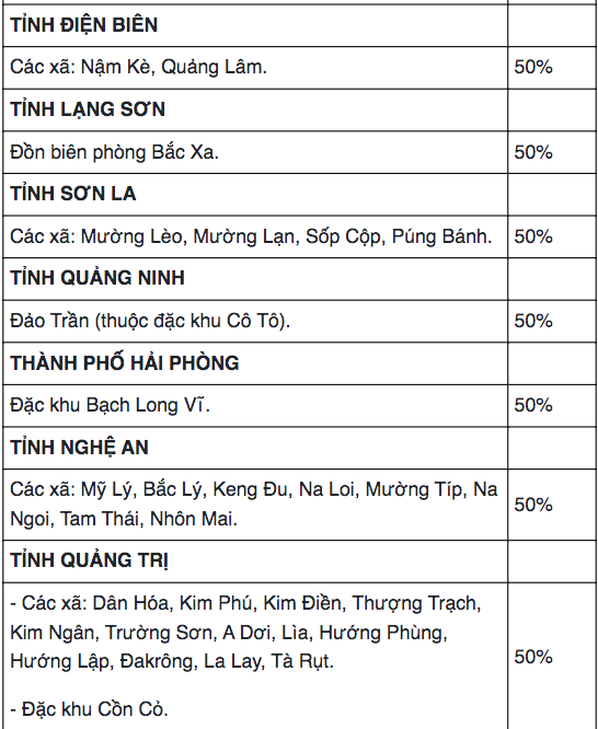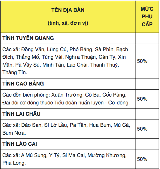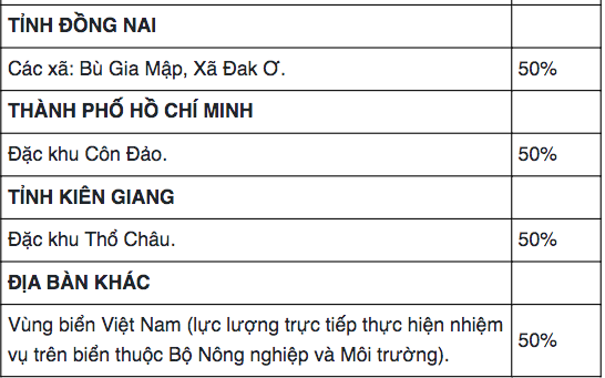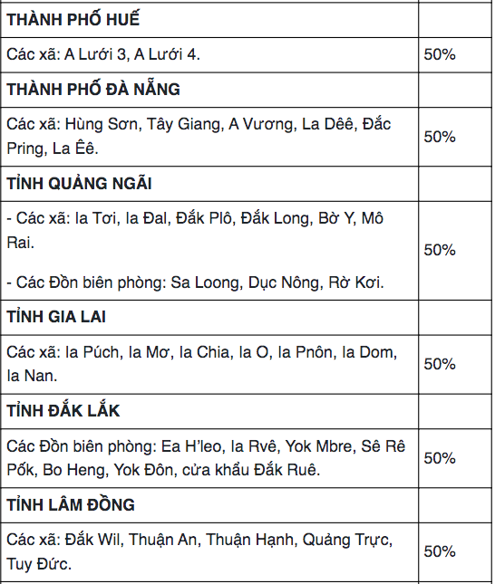 現在50%の特別手当が適用される地域リストは、通達24/2025/TT-BNVに添付された付録に規定されています。