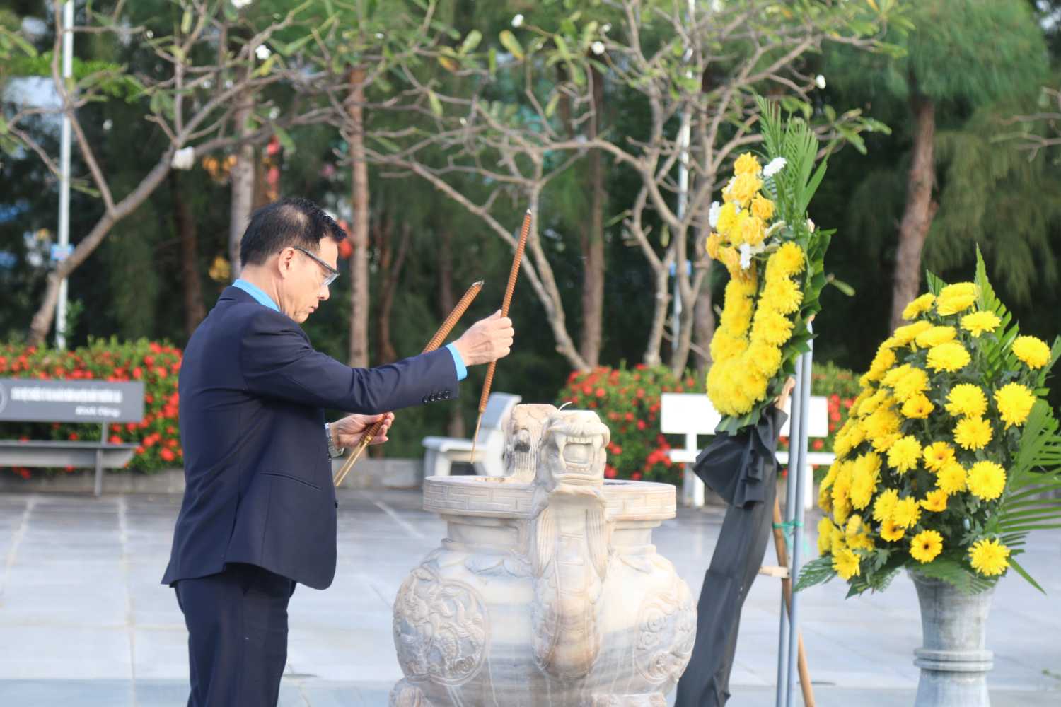 同時に、ガックマ戦で殉職した64人の英雄烈士の名前を刻んだ風の墓地に線香を捧げました。