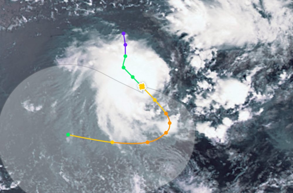 熱帯低気圧の中心付近の最大風速は45〜50km/hに低下します。低気圧は台風に発達する可能性が低いと予測されています。