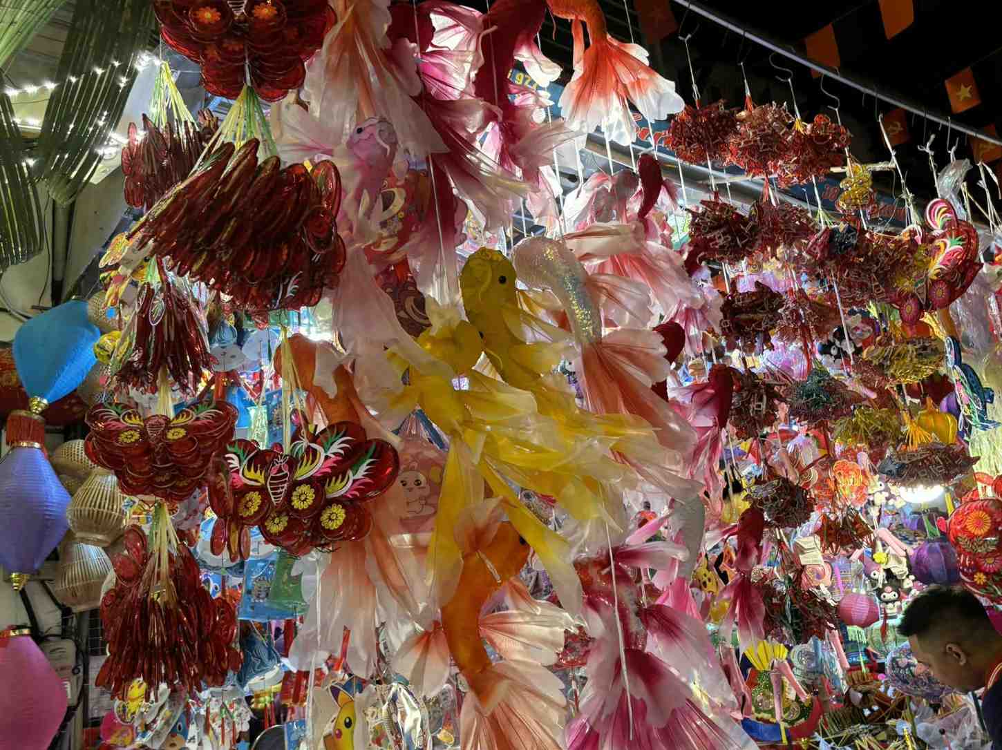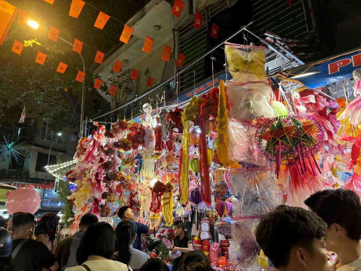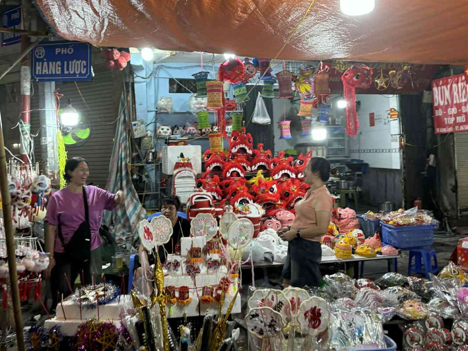 Dau lan、 giay boi、 trong nho、 mat na giay、 ong sao denなどの伝統的な商品は依然として人気がありますが、点滅するライトや電子おもちゃも同様に人気があります。さらに、チョコレート、オリーブ、オリーブオイルなどの食品売り場も観光客、特に子供を魅了しています。