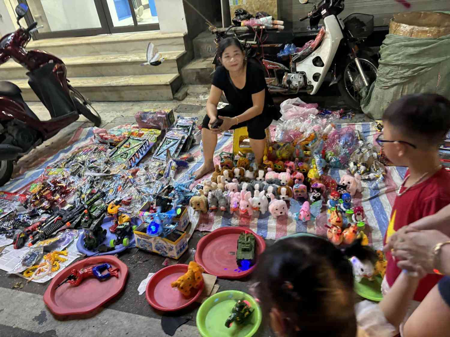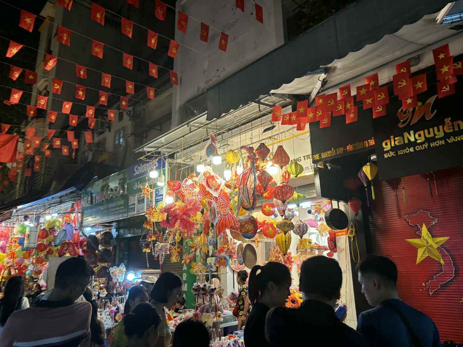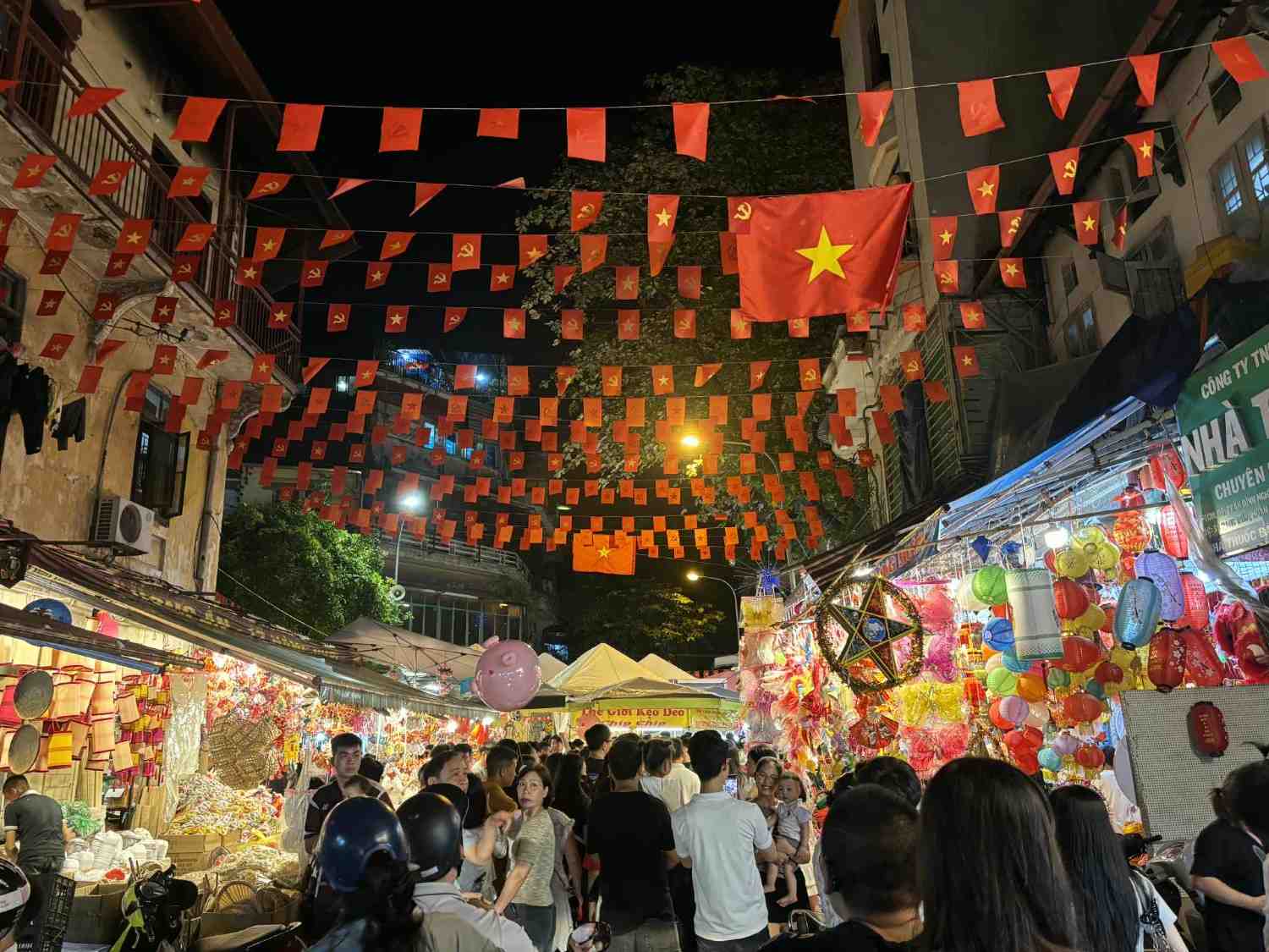 Dau lan、 giay boi、 trong nho、 mat na giay、 ong sao denなどの伝統的な商品は依然として人気がありますが、点滅するライトや電子おもちゃも同様に人気があります。さらに、チョコレート、オリーブ、オリーブオイルなどの食品売り場も観光客、特に子供を魅了しています。