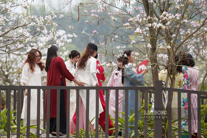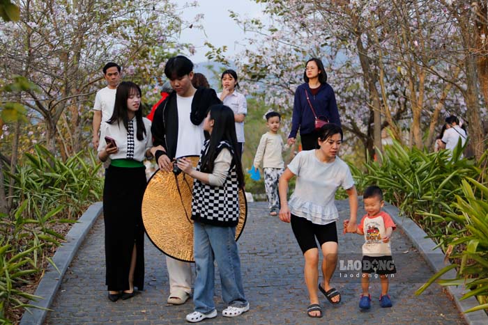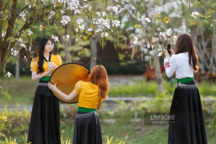 特に、午前8時から10時、午後4時から6時などのゴールデンアワーには、学生から家族まで、新年の瞬間を記録するために携帯電話やカメラを手に持っています。省の中心部に住む人々だけでなく、バンの花の美しさは、コミューンからディエンビエンフー区にやってくる多くの若者も魅了しています。