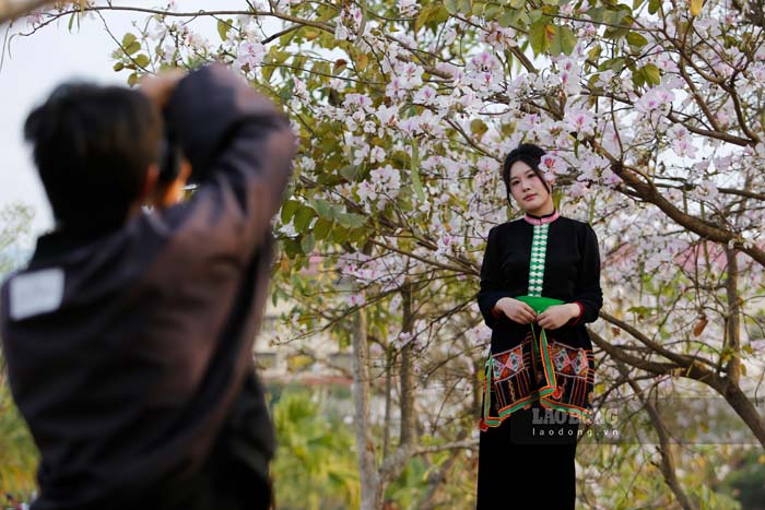 ディエンビエンフー区のフリーランス写真家であるチュン・キエン氏は、「旧正月4日、5日から現在まで、バンの花の屋外写真撮影の予約数が急増しています。多くの場合、木の隅々まで譲り合うために列に並ばなければなりません。ほとんどの若者は、花の美しさを際立たせるためにタイ族の民族衣装を選びます」と述べました。