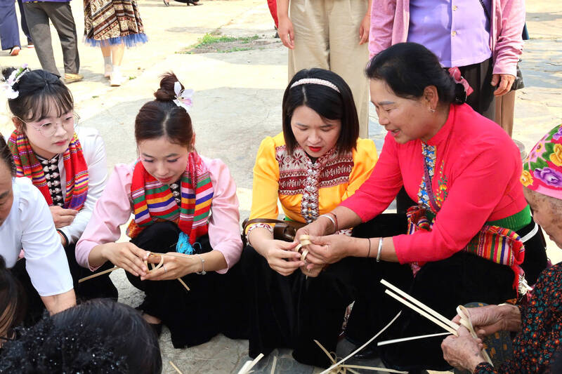 式典では、田んぼを耕す水牛の訓練、森の野菜を摘む、小川で魚をすくう、狩猟旅行など、タイ族の労働生活に関する昔話が鮮やかに再現されました。