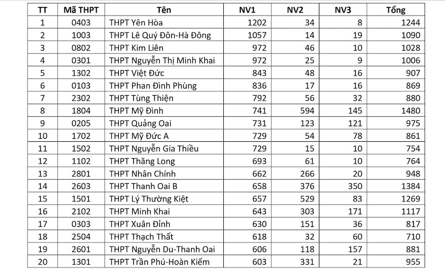 ハノイ教育訓練局の初期統計によると、一部の公立高校は登録者数が多く、その中には生徒の第一志望が多い学校もあります。