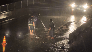 真夜中、多くの人が土を片付け、砂がヴィンハオ - ファンティエット高速道路に溢れかえった