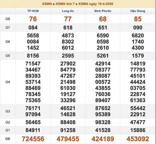 4月18日の南部宝くじの結果は、宝くじ会社が午後4時30分に結果を発表する際に、ラオドン新聞によって更新されます。