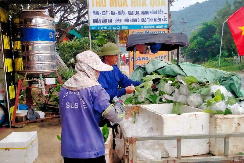 Mai Son コミューン 3.2 tieu khu で、 Do Van Luc さんの家族はナを収穫するのを急いでいます。以前は、地元のトウモロコシとナを栽培していましたが、実が大きく、病害虫が多く、手入れ技術が限られていたため、効果が低くなりました。2021 年から、タイのナ、スイカの移植に切り替え、害虫対策が優れ、収穫が長続きしました。