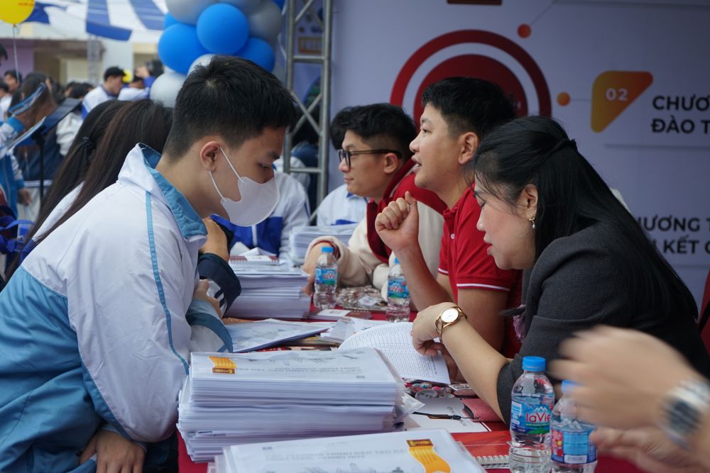 イベントで、タインホア省ナムサムソン区のチュー・ヴァン・アン高校の12年生であるレ・ニャ・ウエンさんは、プログラムに参加できてとても嬉しいと語りました。イベントを通じて、彼女と他の多くの生徒は、入学に関する質問について具体的にアドバイスと回答を受け、それによって自分自身に合った職業を方向付け、選択するためのさらなる基盤が得られました。