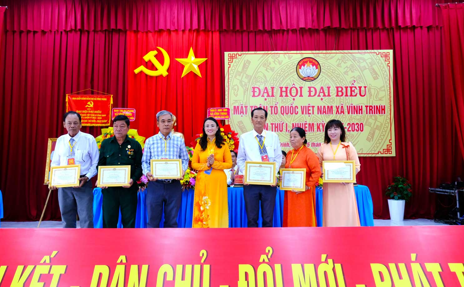 Dai hoi tai chi dao phat bieu Le Thi Suong Mai - Uy vien Ban Chap hanh Tong LDLD Viet Nam, Thanh uy vien, Pho Chu tich Uy ban MTTQ Viet Nam thanh pho, Chu tich LDLD TP Can Tho - ghi nhan va bieu duong tinh than chu dong, linh hoat, doan ket, sang tao va nhung ket qua noi bat cua Uy ban MTTQ Viet Nam xa Vinh Trinh trong nhiem ky qua.