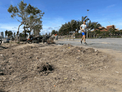 歴史的な洪水の後、フォン川沿いの多くの公園は厚い泥で埋まりました。フエ グリーン パーク センターは高圧ポンプを動員して泥を液化し、景観をきれいにしています。