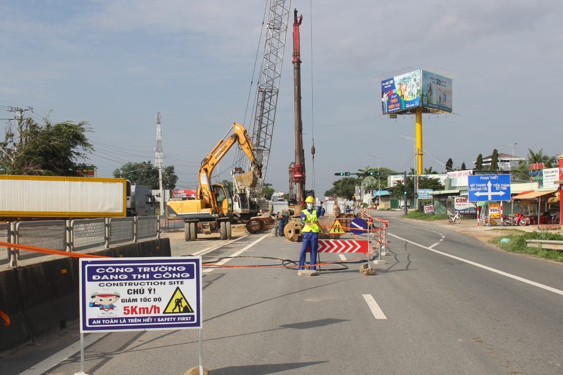 Ba Bau橋の建設、国道1号線が狭まり、両側に車線が1車線しかない