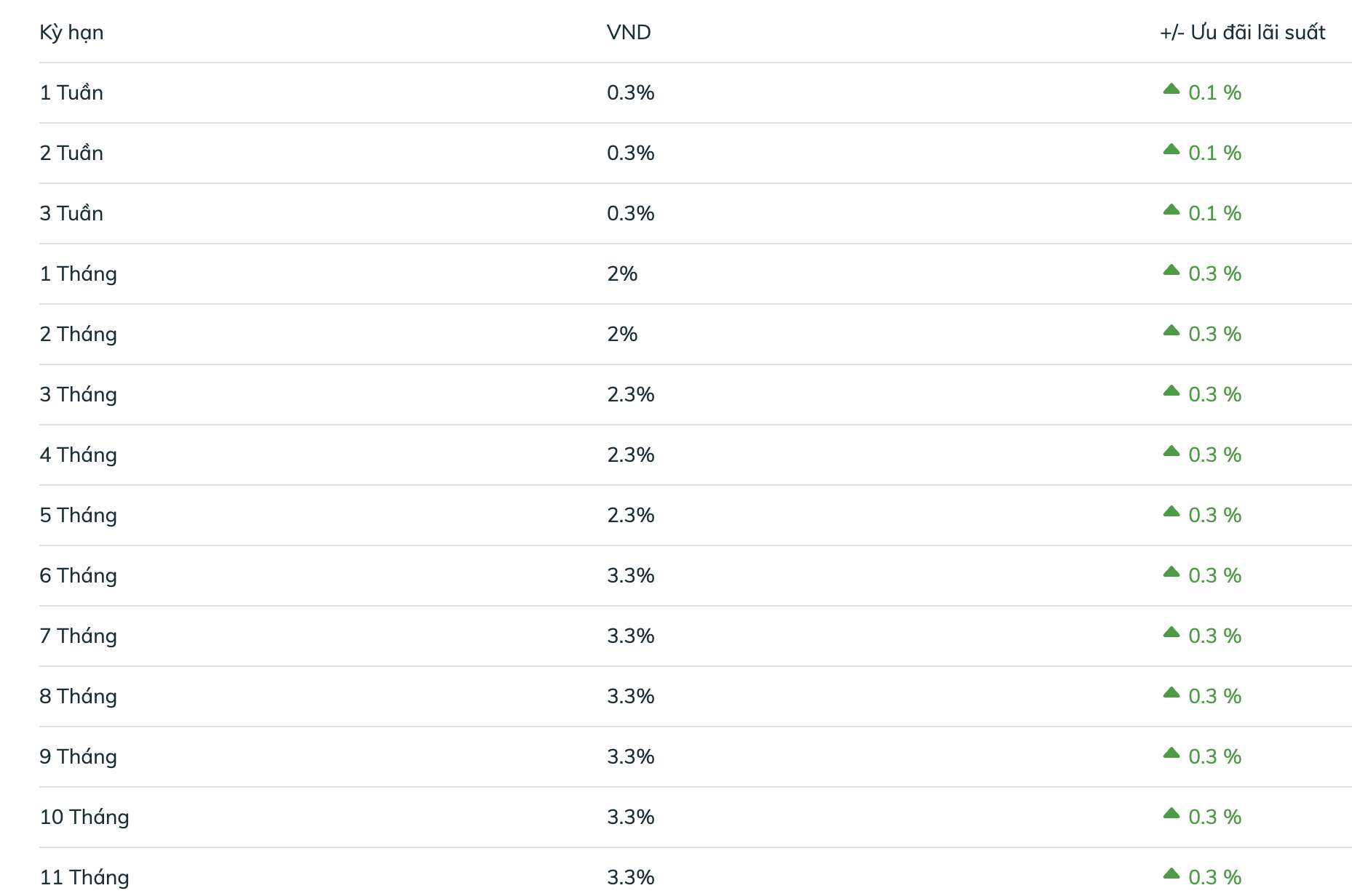 BIDVの6〜11ヶ月の期間の預金金利は年3.3%です。12〜18ヶ月の預金顧客は年4.1%の最高金利を受け取ります。24〜36ヶ月の顧客は年4.9%の最高金利を受け取ります。