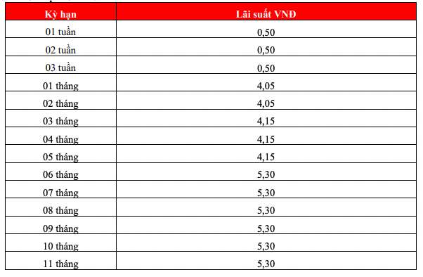 続いて、HDBank は 12 か月の金利 7.7%、最低残高 5,000 億 VND を維持する条件です。通常の状況では、HDBank は、顧客がオンラインでお金を預ける場合は 5.6%、窓口でお金を預ける場合は 5.5% という最高の 12 か月金利を示しています。