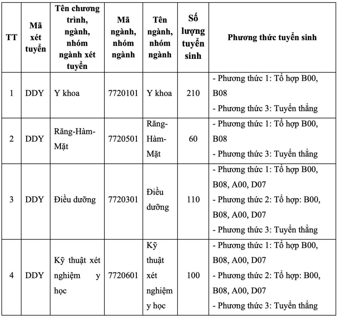 - 2026年の高校卒業試験の結果に基づく選考方法の入学基準点:選考点数は、ダナン大学が規定する入学品質保証基準点を満たす必要があります(ダナン大学は、教育訓練省が開業許可証を持つ医療分野の入学品質保証基準点を発表した後、入学品質保証基準点を発表します)。