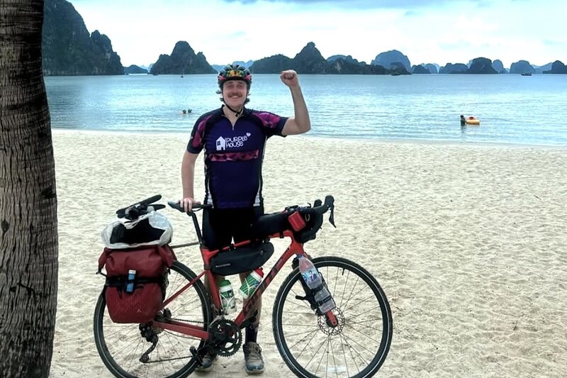 374日間連続で、ガビン・クインンは大陸を自転車で一周し、11 800kmを乗り越えてハロン湾(ベトナム)に到着し、生涯にわたる旅を終えました。