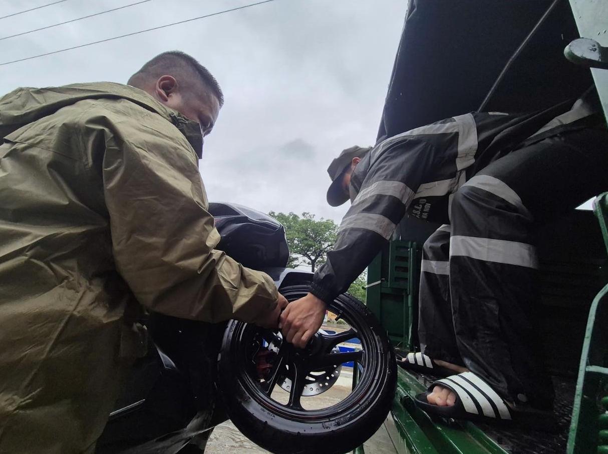 浸水した流れの中で、機動警察部隊が迅速に到着し、住民が浸水地点を移動するのを支援し、故障した車両を支援しました。