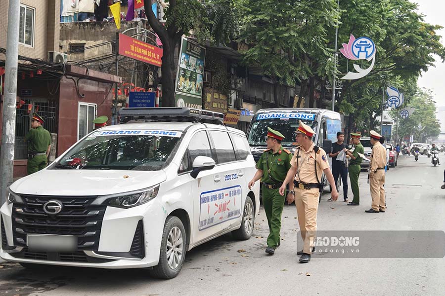 ハノイ市警察の計画を実行するため、交通警察隊(CSGT)は、地方警察と協力して、都市秩序を回復し、安全で円滑な交通を確保するために、違法な駐車違反の取り締まりを強化しました。