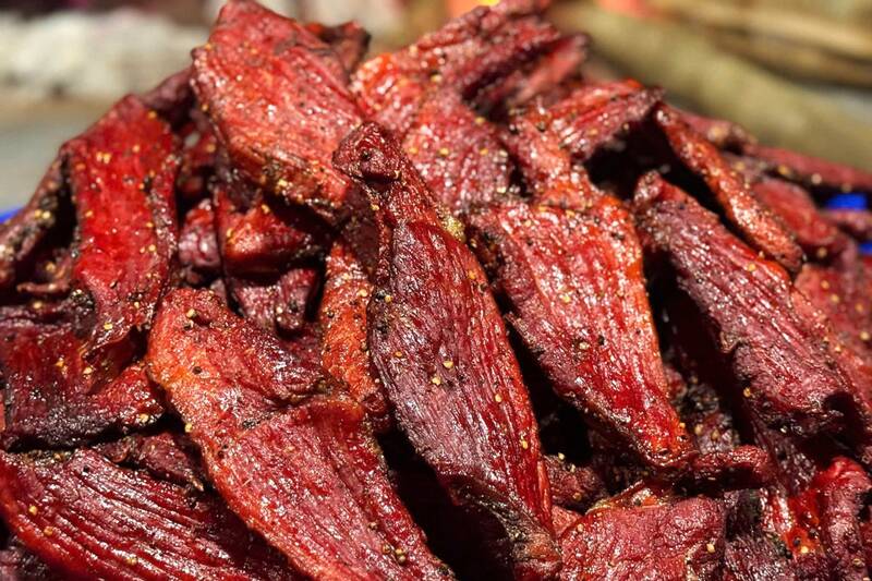 ソンラ省の加工工場では、燻製肉棚が密閉されています。燻製炉は昼夜を問わず赤々と燃えています。薪の煙の香りがマックケン、生姜、ニンニク、唐辛子と混ざり合い、独特の風味を生み出しています。
