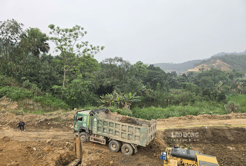 4月初旬、ラオカイ省ドンクオンコミューン地域では、小雨が降り続き、ゴイブック橋の建設現場は泥だらけになりました。資材を運ぶ車両はゆっくりと移動し、機械は泥の中を「必死に」進まなければなりませんでした。しかし、建設現場での施工ペースは決して遅くなりませんでした。