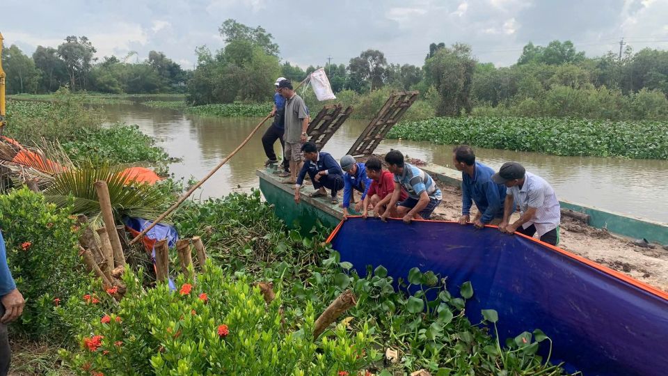 タンフンコミューン人民委員会のファン・ホア・ノン委員長によると、事故発生直後、タンフンコミューン政府は民兵、警察、地元住民を迅速に動員して復旧作業を行いました。各部隊は、茶葉、土嚢、板、機械設備を使用して、運河の外側の給水口を塞ぎ、水が再び田んぼに流れ込むのを防ぎました。