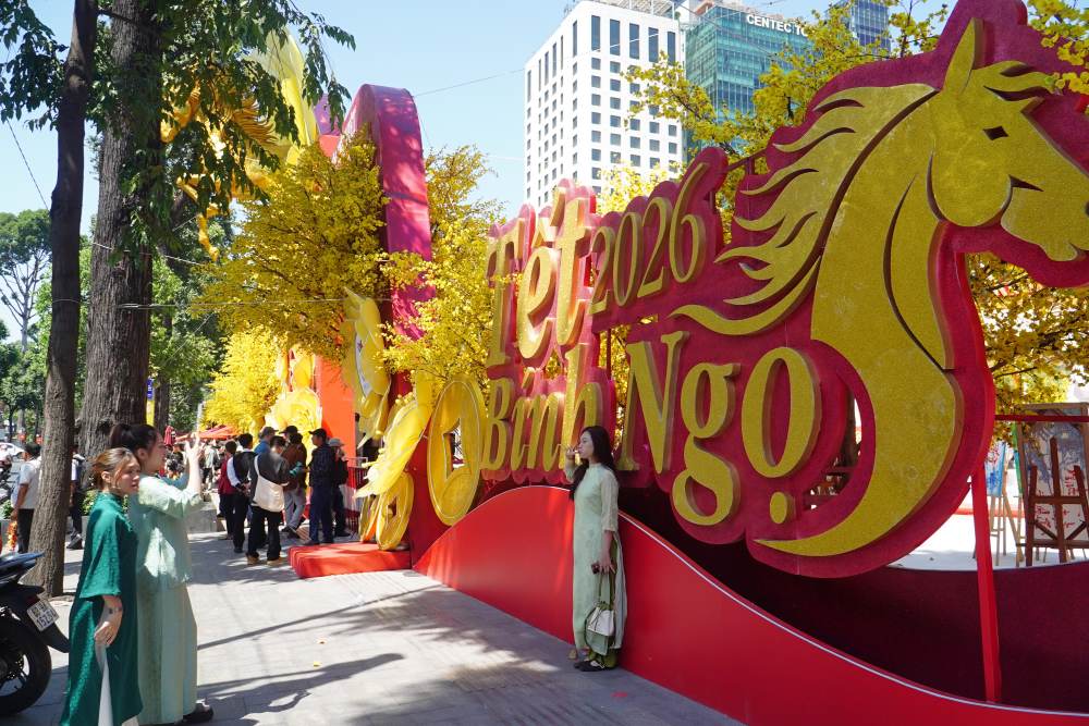 その鼓動に合わせて、文化および商業の目的地も一斉に「新しい服を着替え」ました。ホーチミン市青年文化会館は、2月1日午後に開幕した2026年ビンゴベトナムテトフェスティバルで若者を魅了する焦点となりました。巨大な黄色い梅の花から「飛び出す」馬のマスコットのイメージとオン・ドゥー通りの空間は、伝統的な美しさを称えるだけでなく、新しい時代の都市の力強い飛躍の勢いを示しています。