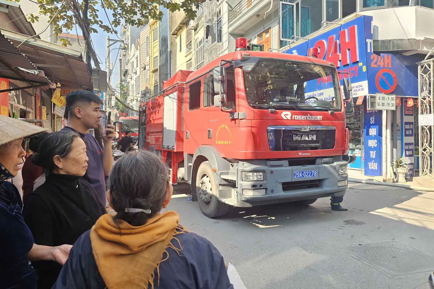 ハノイ - 路地が狭いため、消防車は現場に近づくことができず、関係当局は消火のために路地の端から火災現場まで消火ポンプを引かなければなりませんでした。