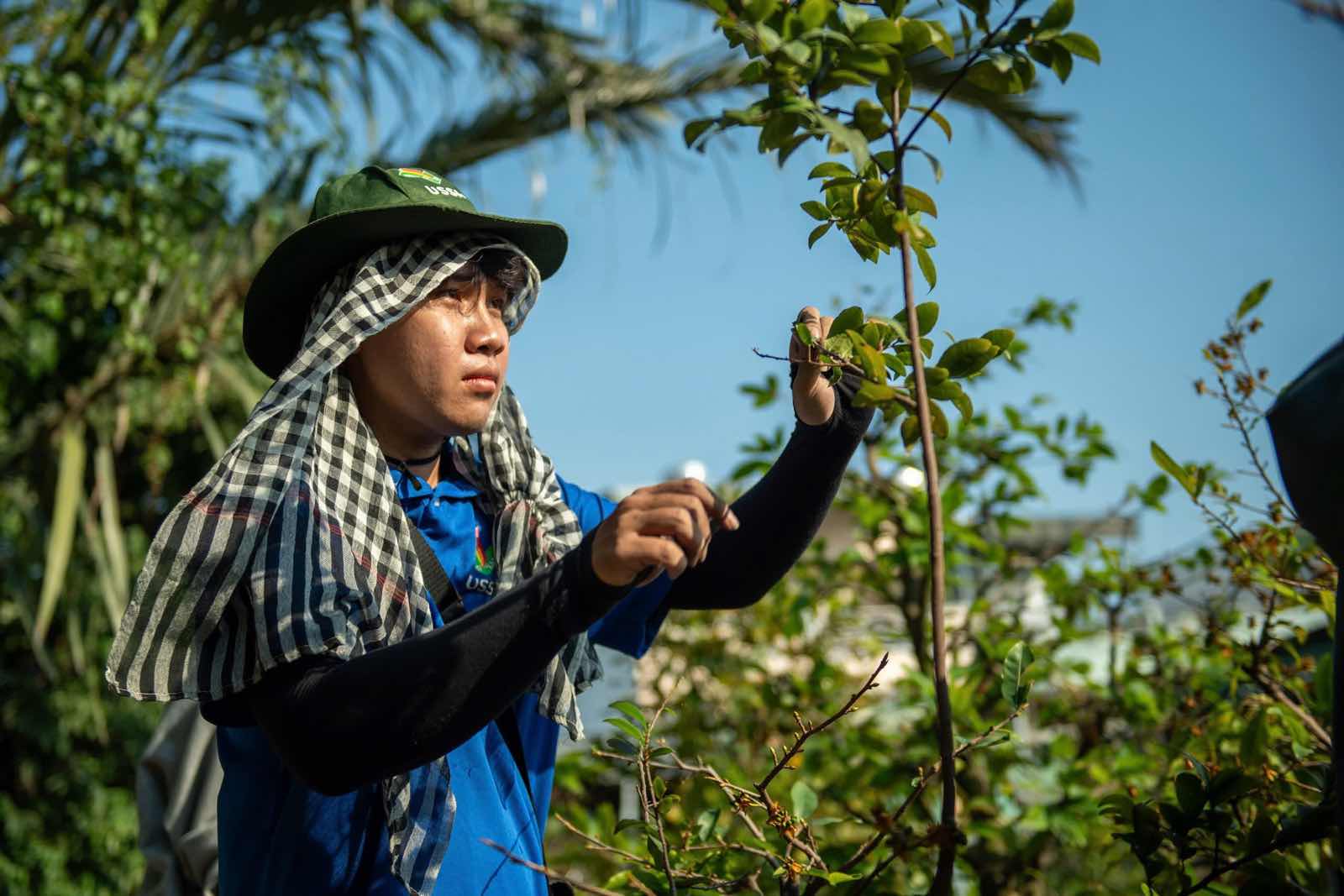 TPHCM - Những ngày giáp Tết, các vườn mai tại TPHCM bước vào cao điểm lặt lá. Nhiều sinh viên tranh thủ làm thêm để kiếm thu nhập.