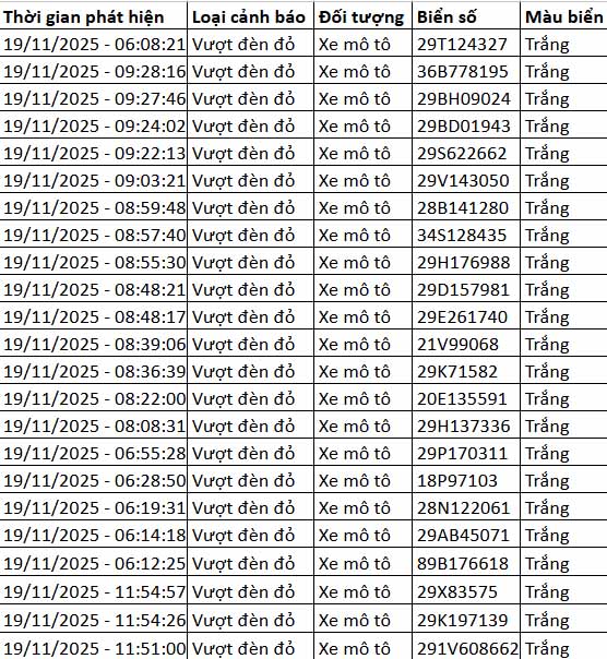 同時に、ファム・ヴァン・バックとホアン・クアンチーの交差点(ハノイ)に試験的に設置されたAIカメラのデータには、バイクのライダーがヘルメットを着用していないケースが11件記録されていた。信号無視は54件、逆走は0件だった。