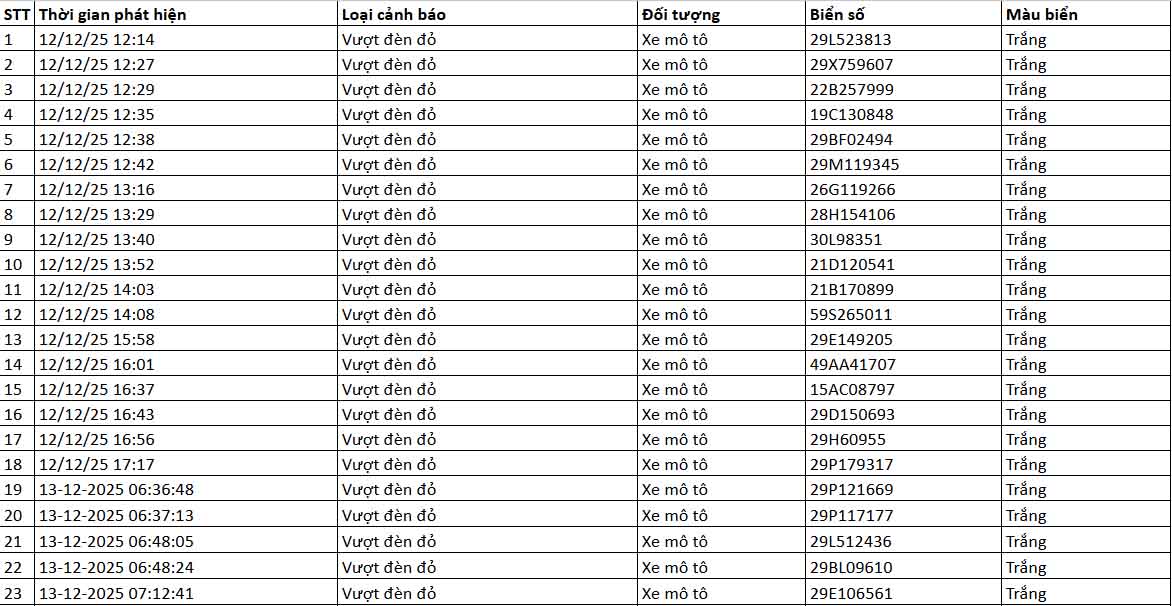 ハノイ市中心部では、交通警察署が運用するAIカメラと、ファム・ヴァン・バック〜ホアン・クアン・チー交差点(カウザイ区)に設置されたパイロットからのデータ抽出により、システムがバイクとヘルメットを着用していないバイク運転者を35件自動的に検出した。