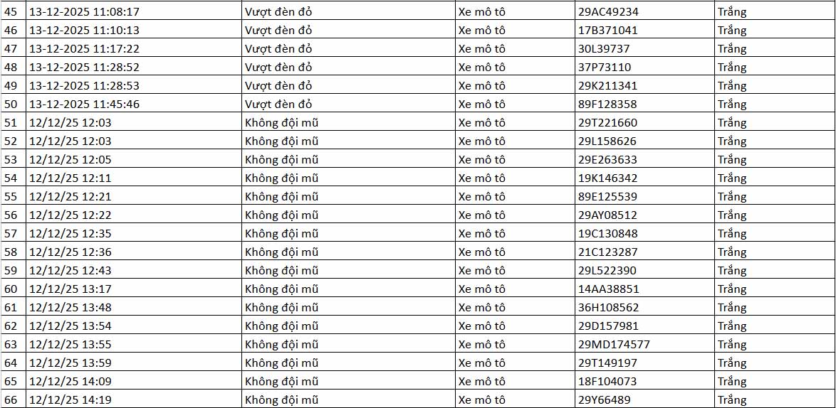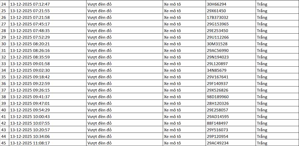 公安省交通警察局(CSGT)からの情報によると、2025年12月12日午後12時から2025年12月13日午後12時までの期間、人工知能(AI)を応用したカメラシステムは、ハノイ市およびノイバイ-ラオカイ高速道路における交通安全秩序違反行為の監視、発見において引き続き効果を発揮します。