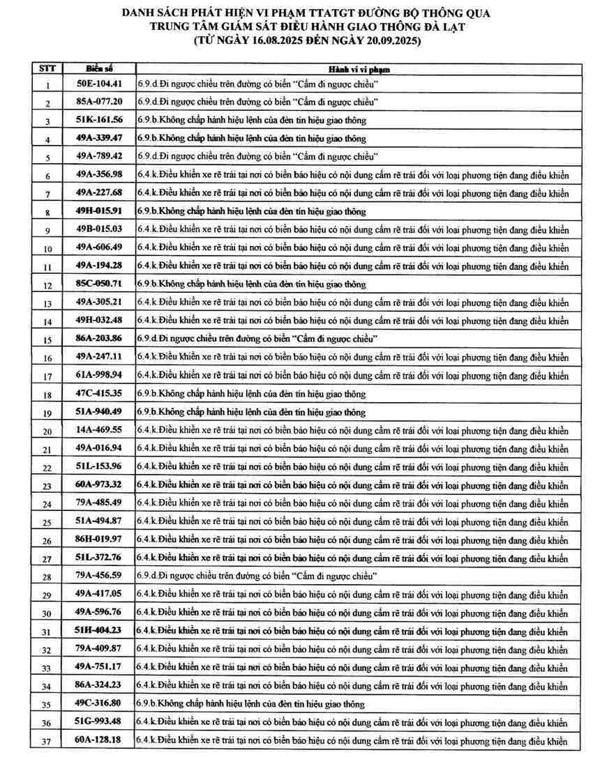 10月13日、ラムドン省警察交通警察署は、ダラット交通監視センターが2025年8月16日から9月20日までに、スアンフオン~ダラット、カム・リー~ダラット、ラムビエン~ダラットの区内で交通違反をした車両482台を記録し、検知したと発表した。