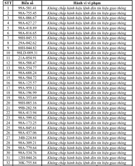 ニンビン省警察交通警察署によると、3月21日から3月31日まで、監視カメラシステムの運用と専門機器の使用を通じて、交通警察は次のような多くの赤信号無視違反を記録しました。