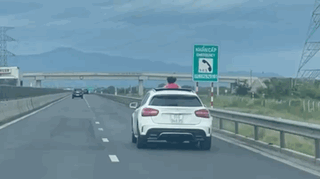 ラム・ドン - 多くのドライバーは、車がヴィン・ハオで走ったときに子供たちがサンルーフを通り抜けるための運転クリップを見るとき、不満を抱いています - ファン・ティエト高速道路。
